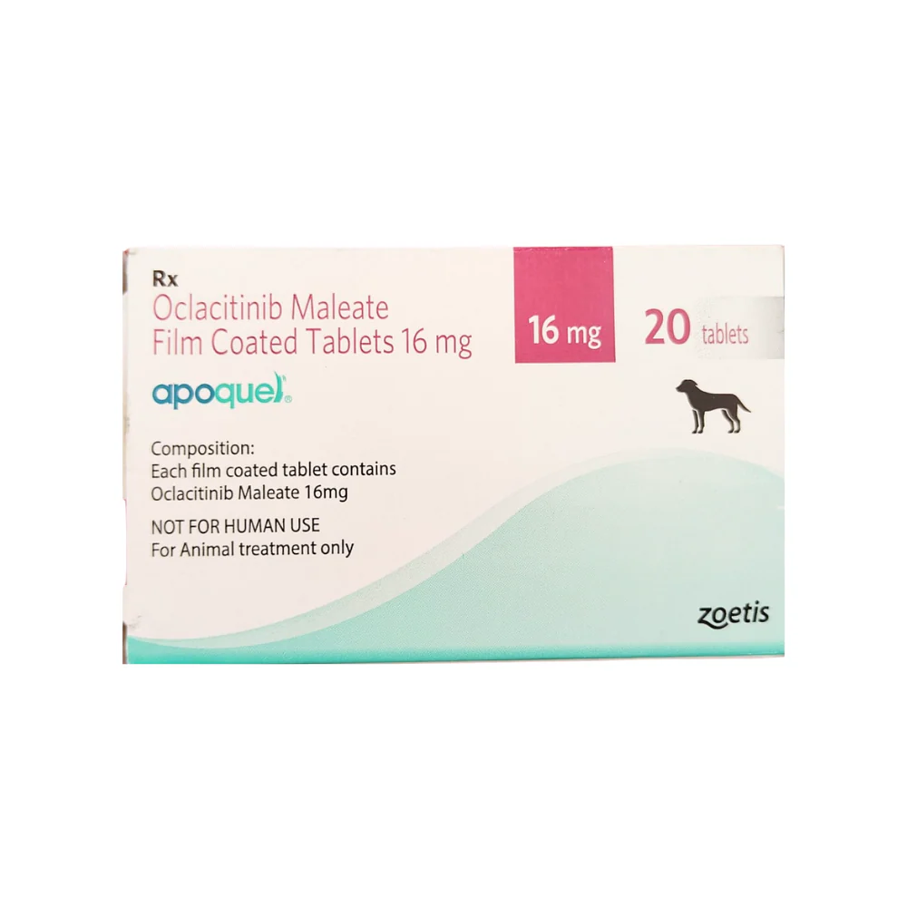 Apoquel 10 Tablets 16 mg is a veterinary prescription medication formulated to help manage itching and allergic skin conditions in dogs. Its active ingredient works by blocking specific pathways involved in inflammation and itch sensation, providing targeted relief from allergic dermatitis and atopic skin disease when used under strict veterinary supervision.