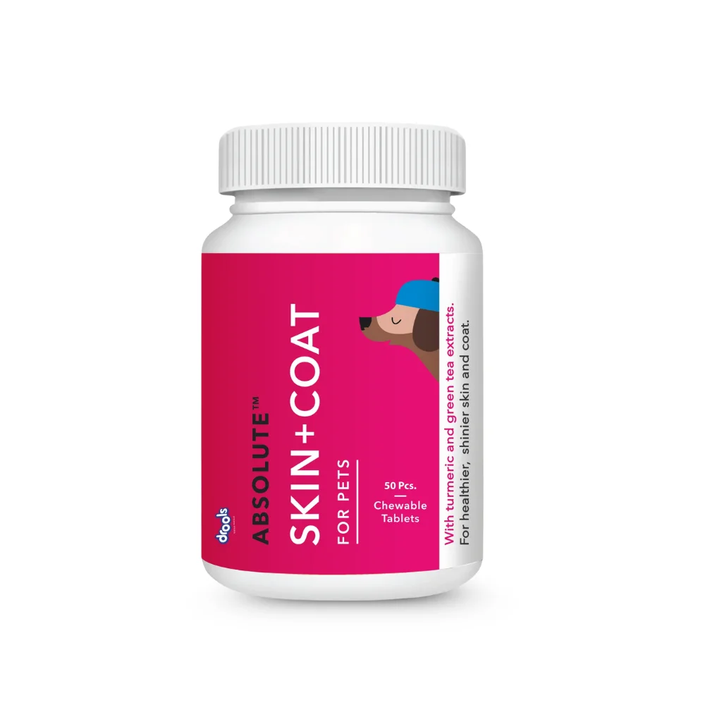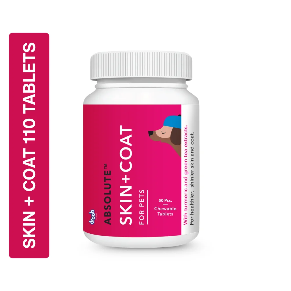 Drools Absolute Skin + Coat Chewable Tablets are a Health Supplement for Pets. They are formulated to promote healthier, shinier skin and coat. The supplement comes in a chewable tablet format which is easy to administer to dogs. The bottle contains 50 tablets.