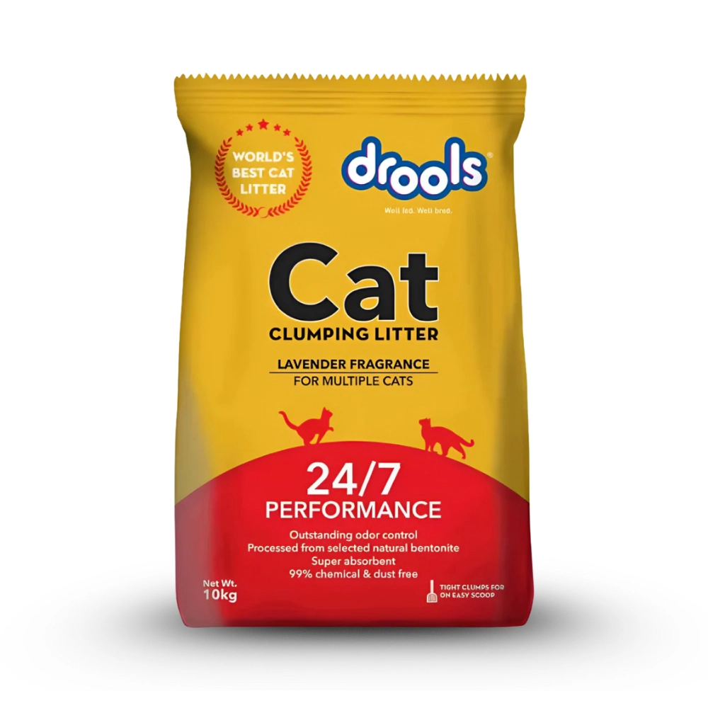 Drools Cat Clumping Litter is promoted as the World’s Best Cat Litter. It is designed for 24/7 Performance and is suitable for Multiple Cats. It provides Outstanding Odor Control and is processed from selected natural bentonite. This litter is Super Absorbent and is 99% chemical & dust free. The litter forms Tight Clumps for Easy Scoop. The product features a Lavender Fragrance.