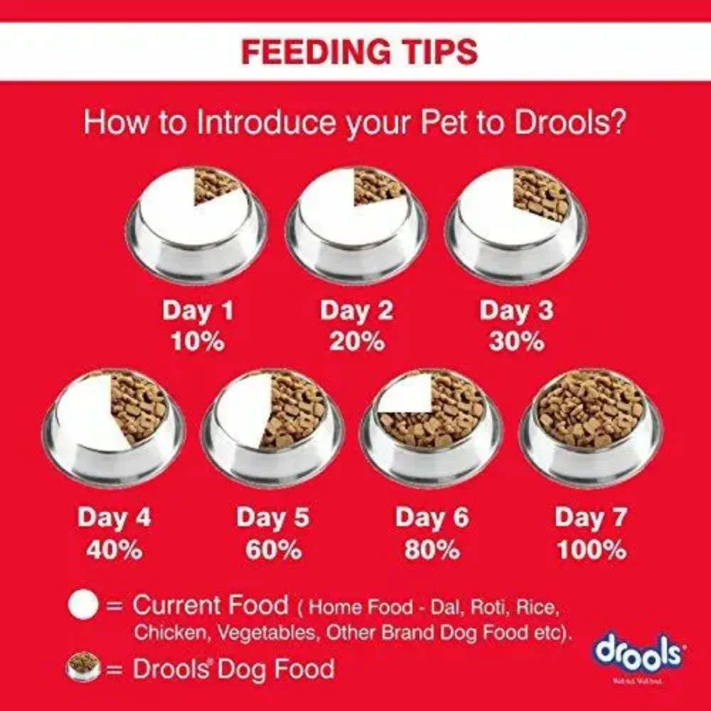 Drools Starter Mother & Puppy Dry Dog Food is an All Breed Formula designed for pregnant/lactating mother dogs and puppies during the initial growth stage. The food provides 100% Nutrition with 0% Fillers and is formulated in the USA. It is made with real chicken and egg. It is enriched with DHA to support brain development. The formula is crafted to meet the high energy and nutritional requirements of both the mother and the weaning puppies.