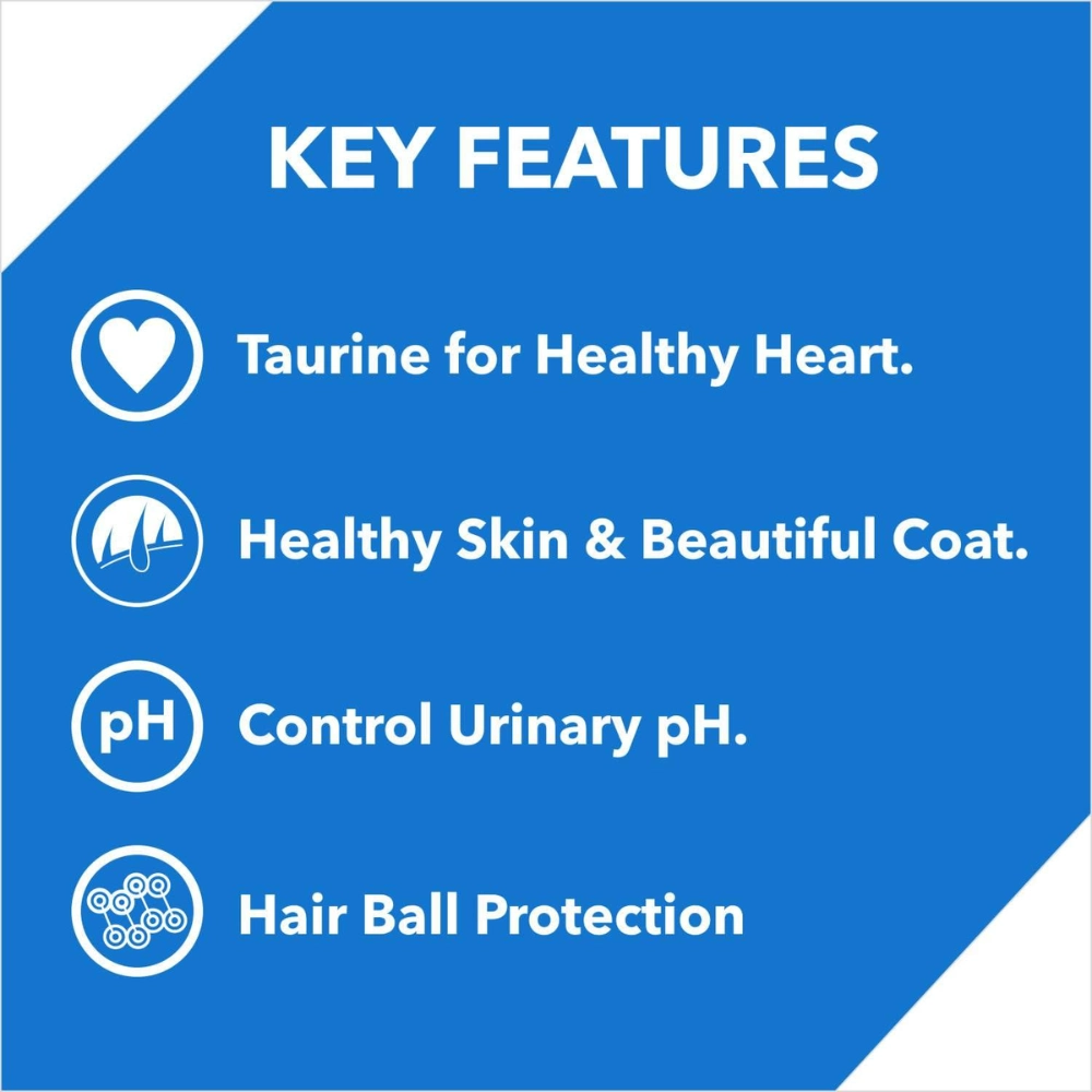 This cat food provides 28% Protein and 14% Fat. It is enriched with Omega 3 and 6 Fatty Acids to support a Healthy and Shiny Coat. It contains essential Vitamins and Minerals to provide balanced nutrition and support immunity. Taurine is included to maintain Healthy Eyesight.
