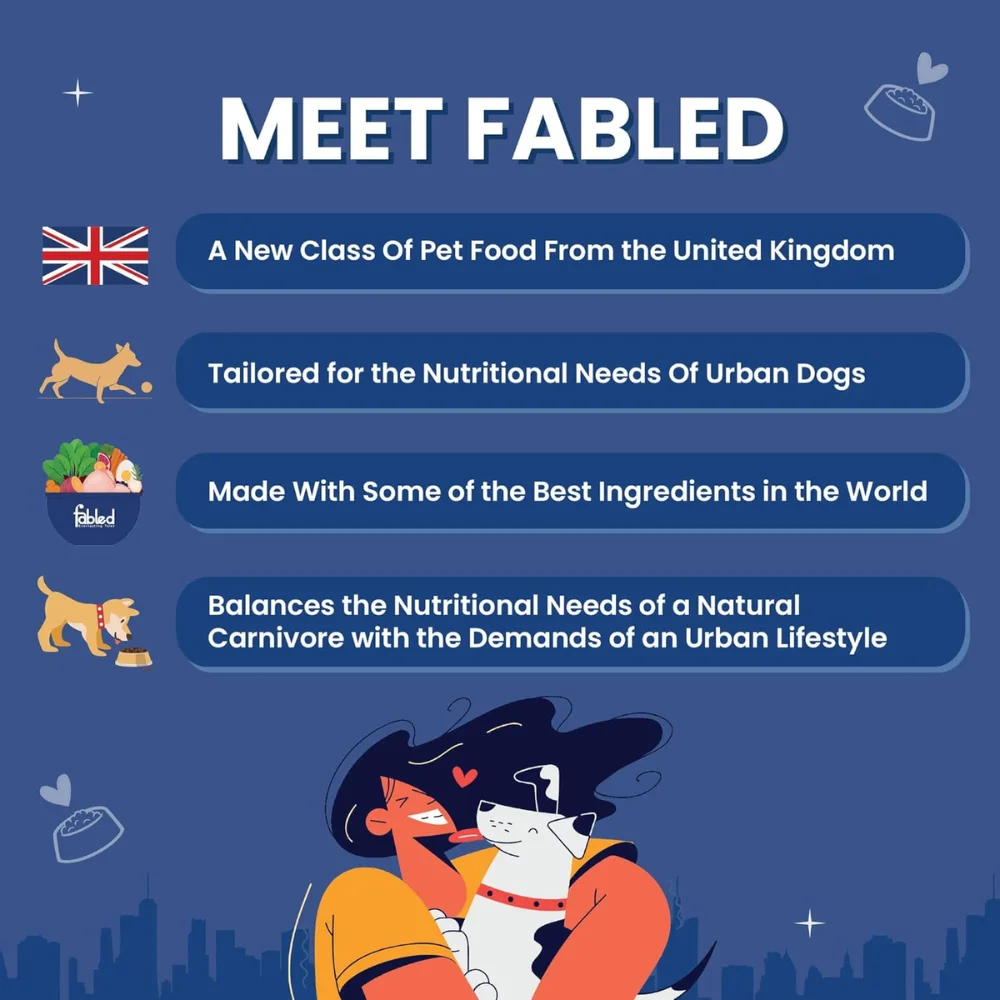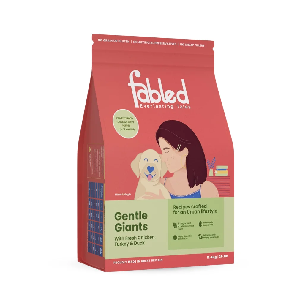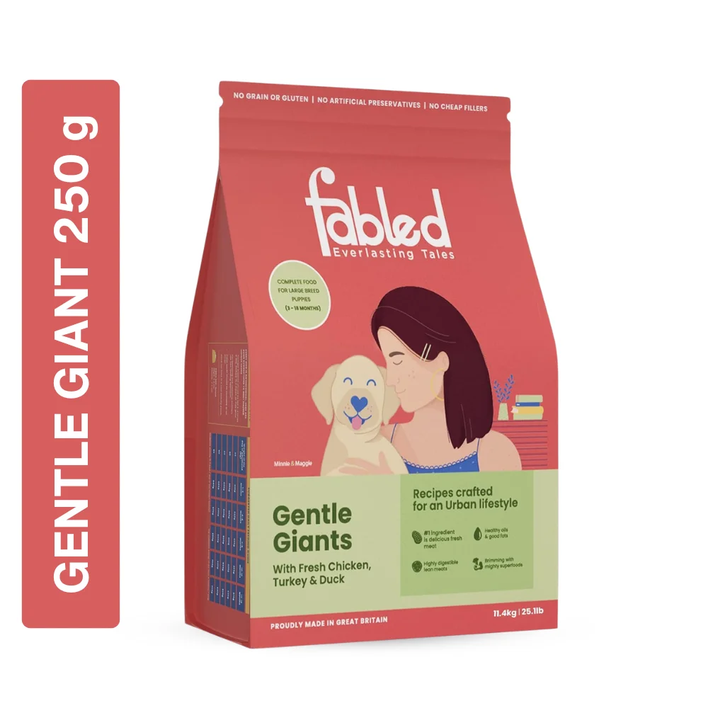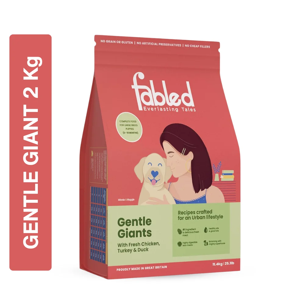 Fabled Gentle Giant is a specialized dog food formulated for large and giant breed adult dogs. It is designed to support joint health, maintain healthy weight, and provide complete nutrition tailored to the needs of bigger dogs. This formula ensures strong muscles, healthy bones, and overall vitality while offering an enjoyable meaty taste.