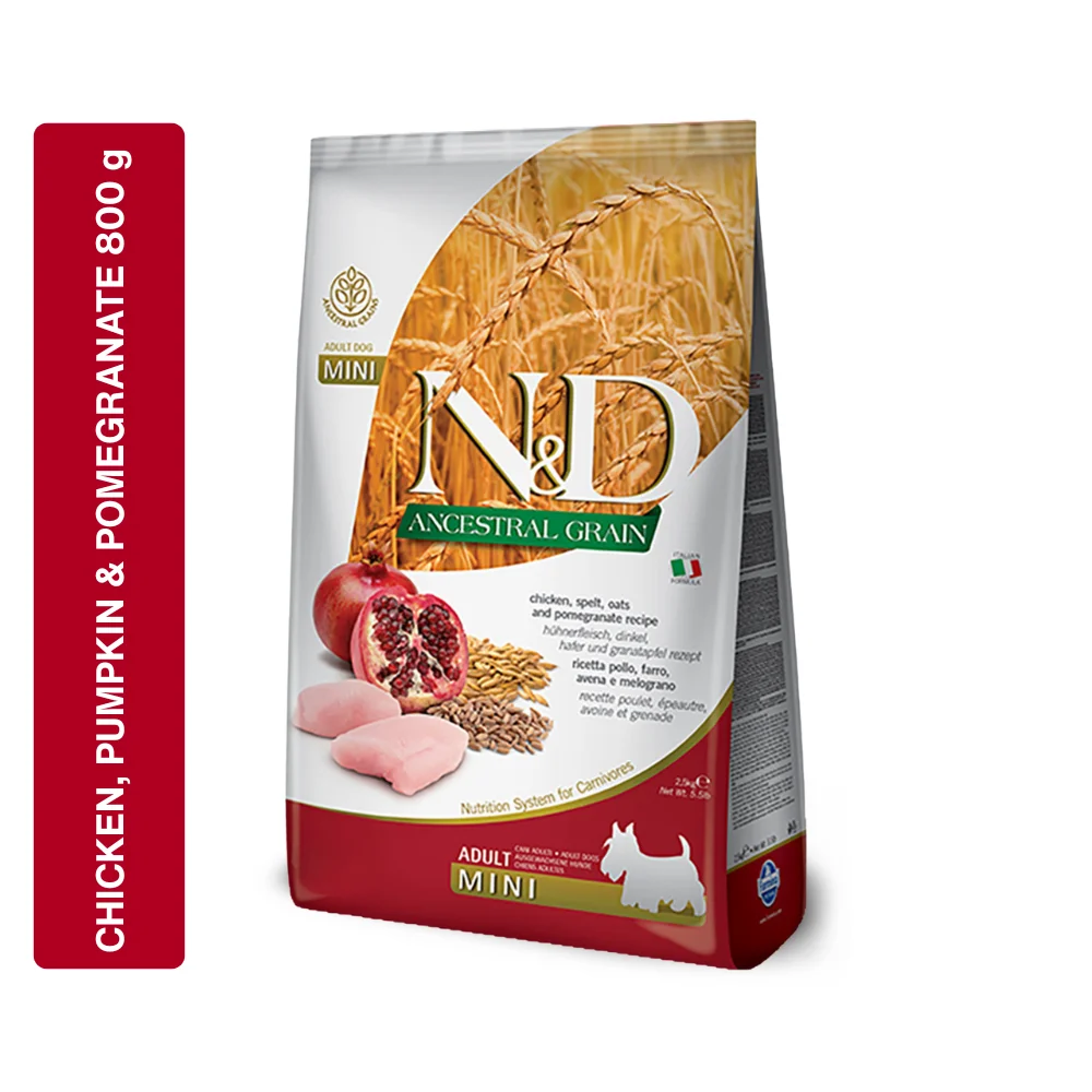 Farmina N&D Pumpkin is a complete food for adult dogs that is specifically formulated for Mini breeds. This formula is a Nutrition System for Carnivores that uses the unique properties of pumpkin. It is made with fresh deboned chicken and is a Grain-Free formula (implied by N&D Pumpkin line). It provides a naturally nutritious diet for adult dogs.