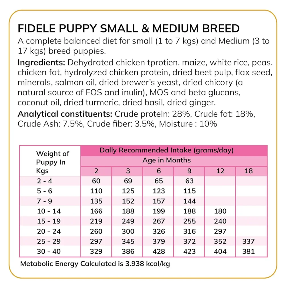 Fidele+ Dry Dog Food Puppy Small & Medium Breed is a complete and balanced pet food specially formulated to meet the growth and development needs of small and medium breed puppies. It is designed to support healthy growth, strong bones, and proper muscle development during the crucial early life stages. This formula provides balanced nutrition to support high energy needs, healthy digestion, and strong immunity in growing puppies.