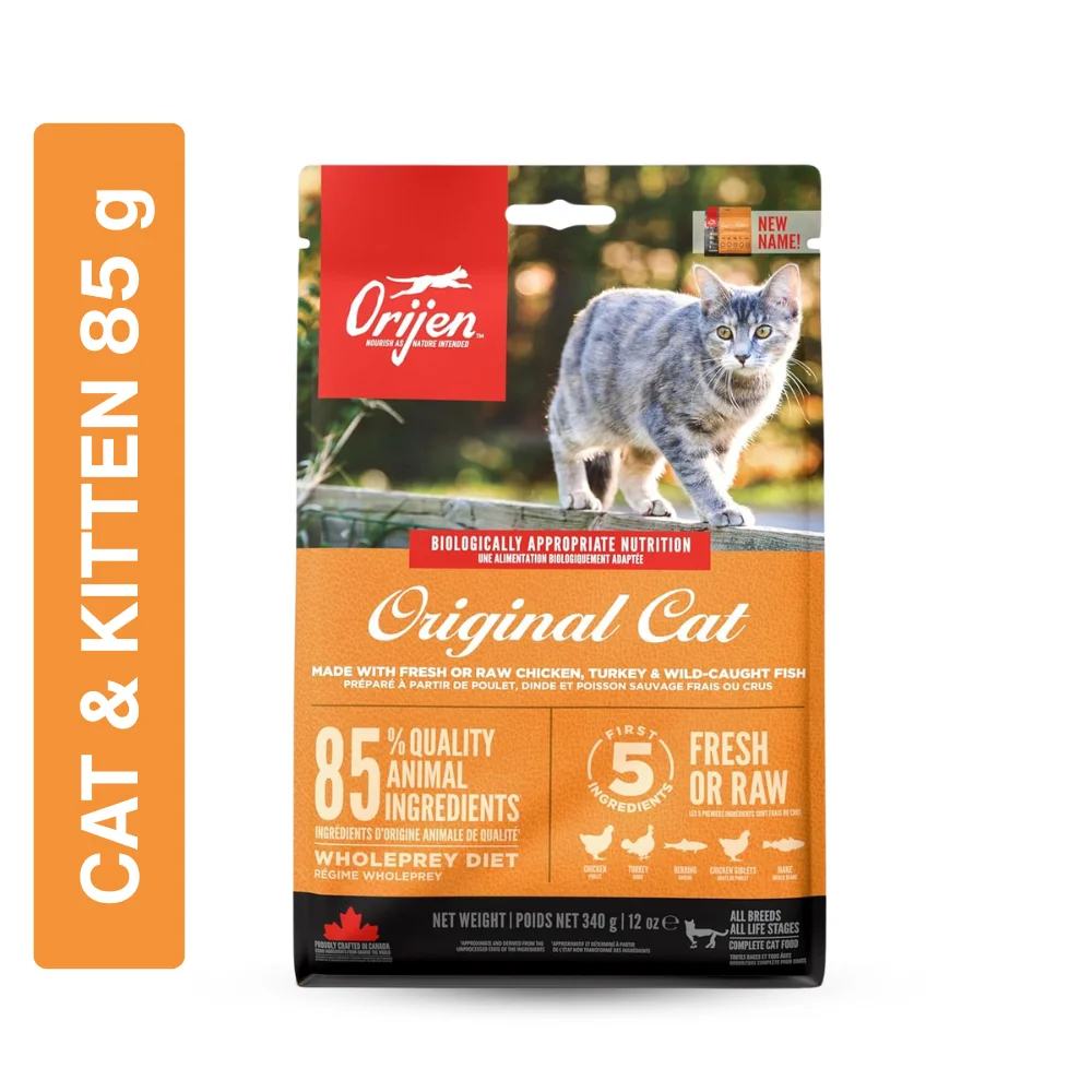 Orijen Original Cat is a Biologically Appropriate Nutrition formula designed for cats of all breeds and life stages. This recipe is a complete cat food crafted with a focus on high-quality animal ingredients. It follows a WholePrey Diet philosophy, incorporating meat, organs, and bone to provide nutrients in their most natural and nourishing form. The formula contains 85% quality animal ingredients.
