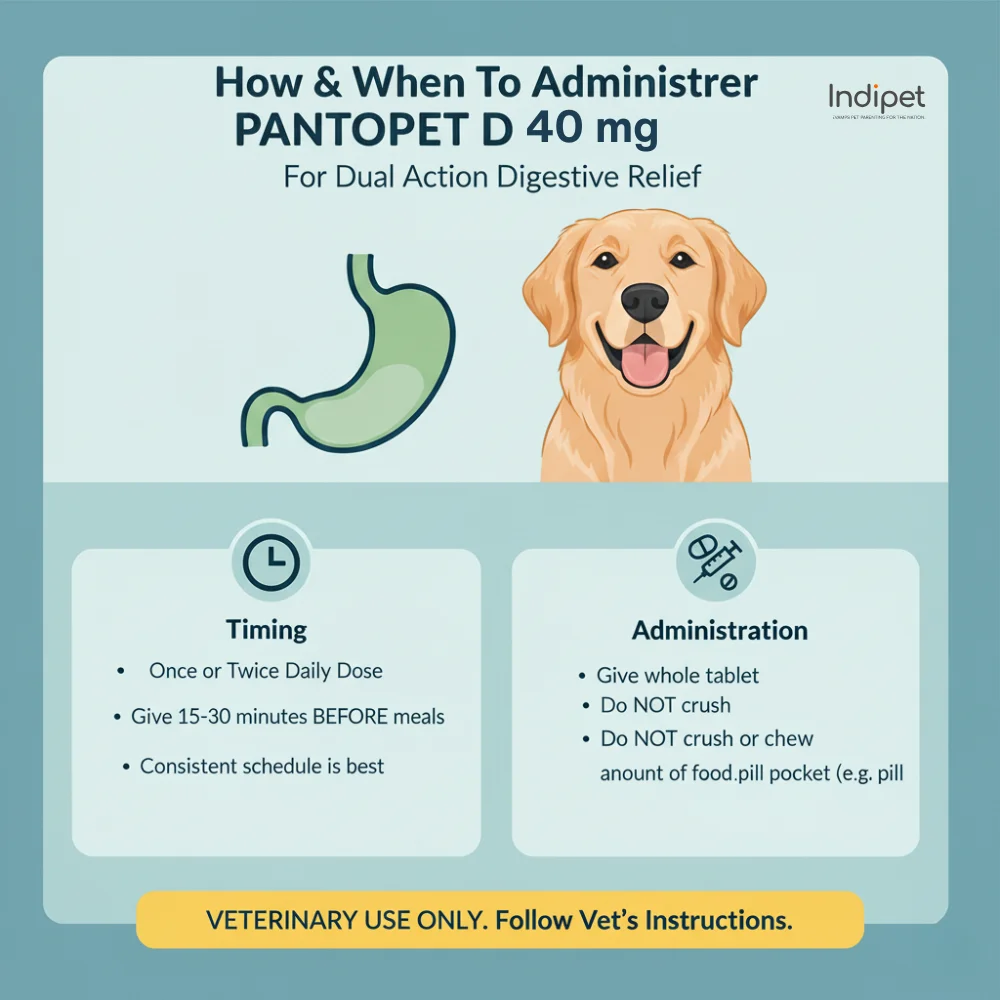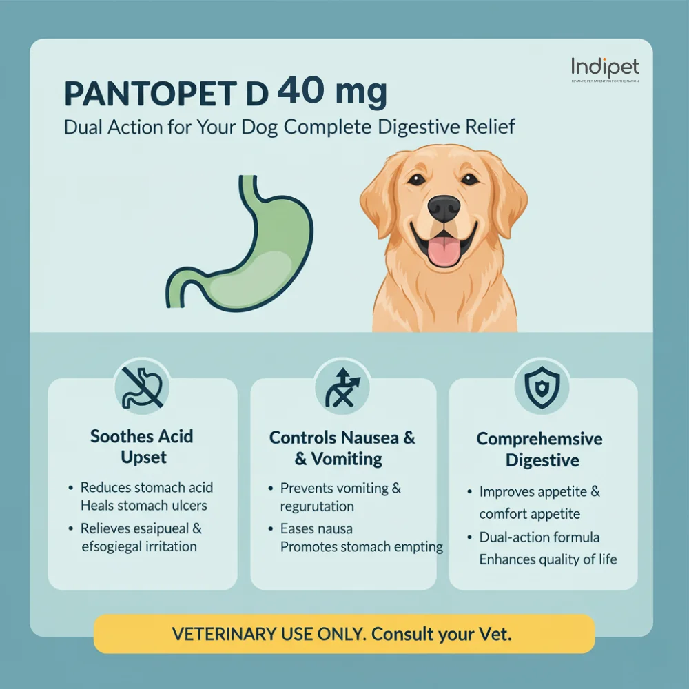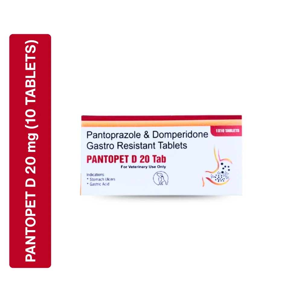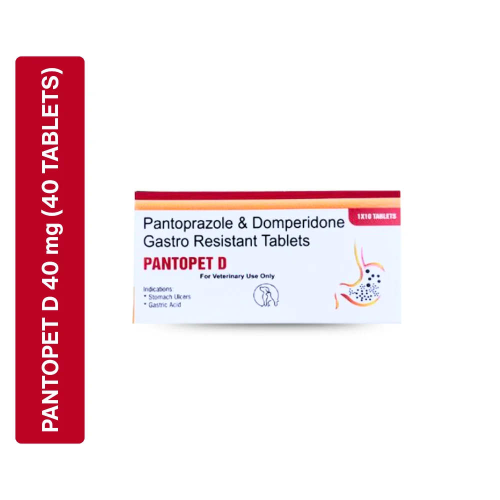 Pantopet-D is a gastroprotective veterinary medicine for dogs and cats formulated with pantoprazole and domperidone. It is designed to reduce excess stomach acid while improving gastric motility, making it effective in the management of acidity, acid reflux, gastritis, and vomiting. Pantopet-D helps protect the stomach lining and supports faster recovery of digestive health, especially in pets with gastrointestinal disturbances, when used under veterinary guidance.