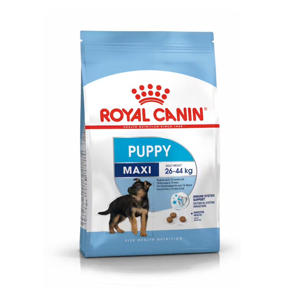 ROYAL CANIN® Maxi Puppy is specially formulated with the nutritional needs of your large puppy in mind. This food is suitable for large puppies from 2 to 15 months old that will have an adult weight of approximately 26kg-44kg. ROYAL CANIN® Maxi Puppy food contains a patented complex of antioxidants – including the highly beneficial vitamin E – to support your puppy’s natural defences while its immune system is immature and still developing. The combination of nutrients that contain high quality protein (such as L.I.P., known for its very high digestibility) as well as prebiotics like FOS help to support your puppy’s digestive health Large puppies have a long growth period, that’s why they need a diet that accounts for the implications of this period. Fortunately, ROYAL CANIN® Maxi Puppy contains a moderate energy level to meet your puppy’s energy needs. A variation of ROYAL CANIN® Maxi Puppy dry food is also available depending on your puppy’s lifestyle. If your large puppy is quite active then it will have higher energy needs, if this is the case then why not try ROYAL CANIN® Maxi Puppy Active.