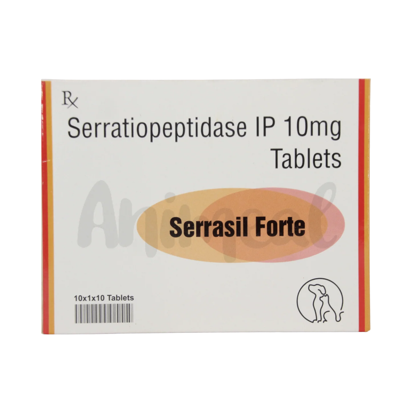Serrasil Forte 10 Tablets is a veterinary anti‐inflammatory and antimicrobial medicinal formulation designed to help manage bacterial infections and associated inflammatory conditions in dogs and cats. It combines active ingredients that work to reduce inflammation, control infection, and support symptomatic relief when used under veterinary guidance.