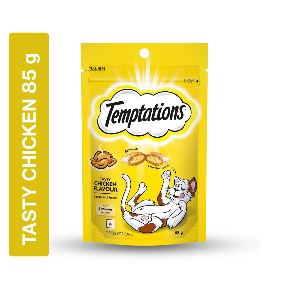 Temptations Cat Treat Tasty Chicken Flavour is a delicious and crunchy treat specially crafted for adult cats. It serves as an enjoyable snack or training reward, providing irresistible flavor while keeping calorie intake moderate. This treat is designed to delight your cat’s taste buds while supporting overall well-being.