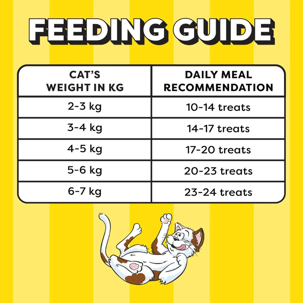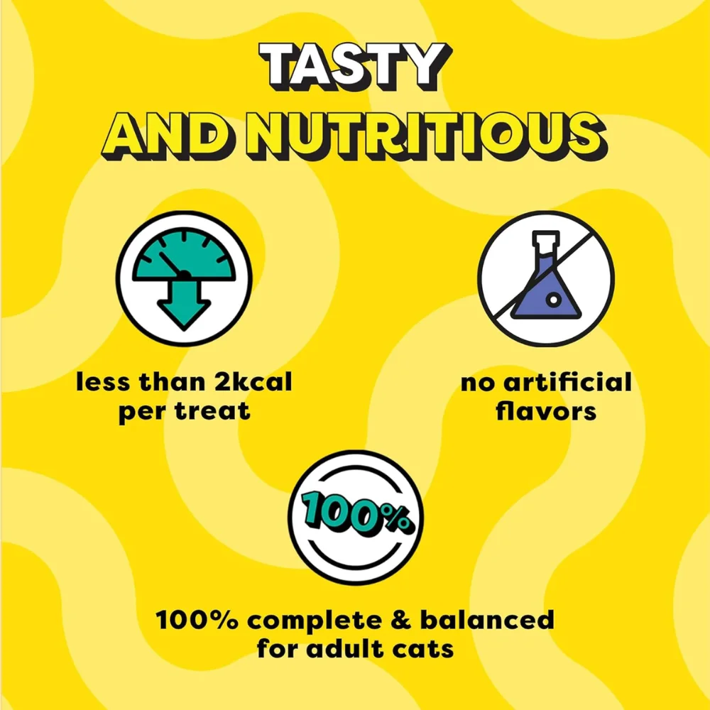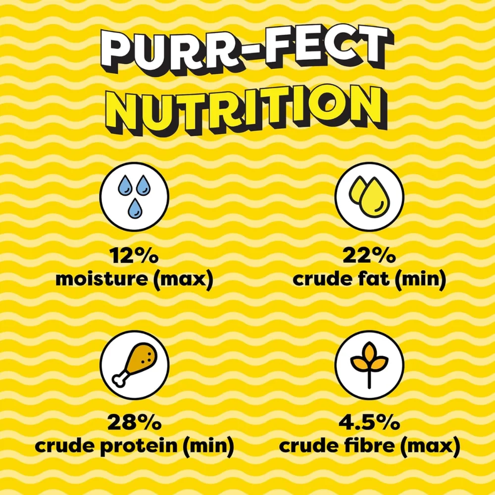 The recipe features chicken as the primary protein source, offering high-quality nutrition and savory taste that cats love. The crunchy texture makes it enjoyable to chew, promoting fun snack time.